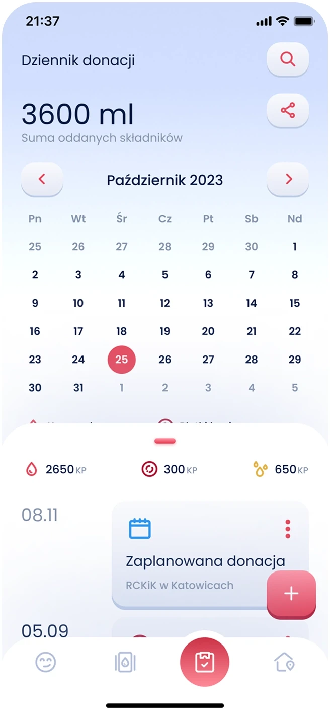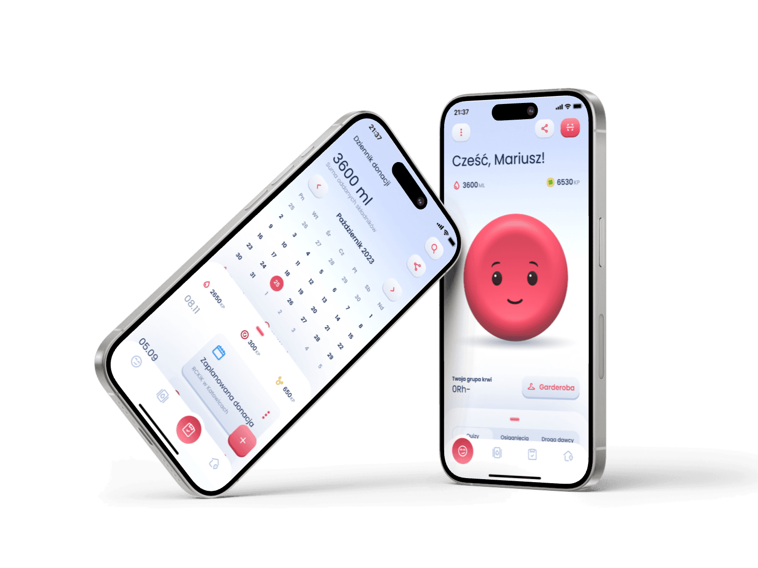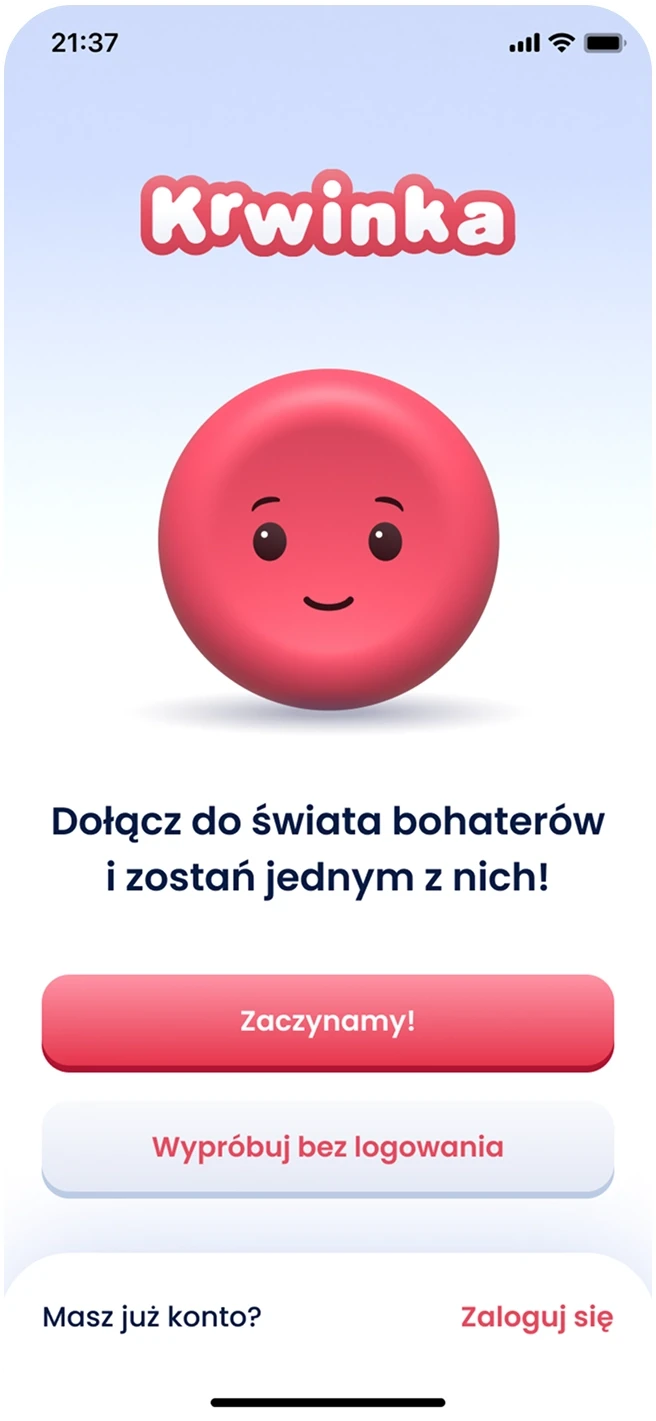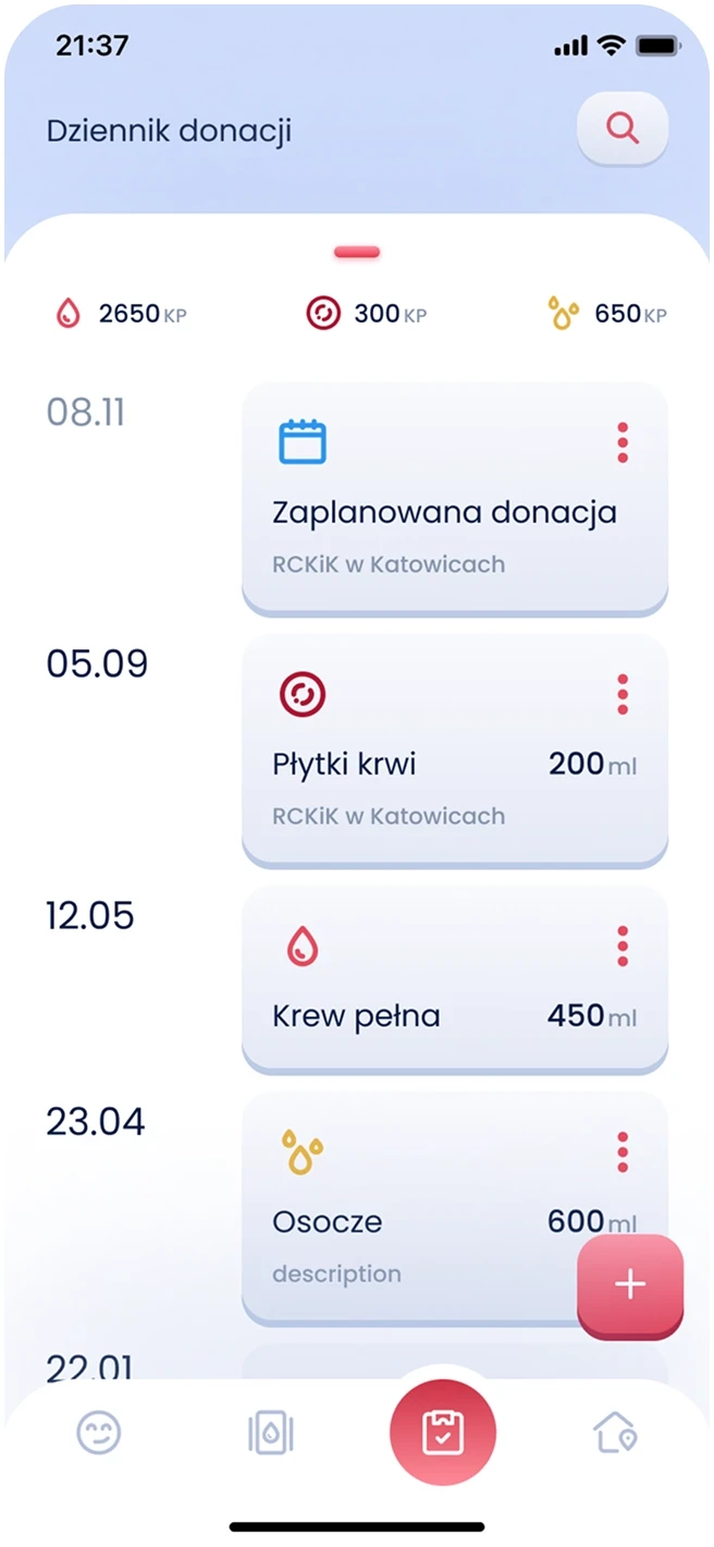 To create emotional connection and sustained engagement, I introduced gamification into the app. At the center of this concept was “Krwinka” - a virtual character representing a healthy red blood cell. Krwinka would change its appearance based on the user’s activity, becoming weaker if too much time passed since the last donation.