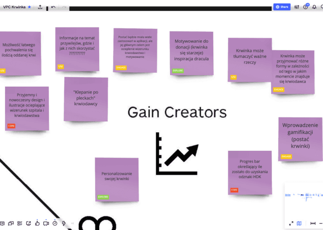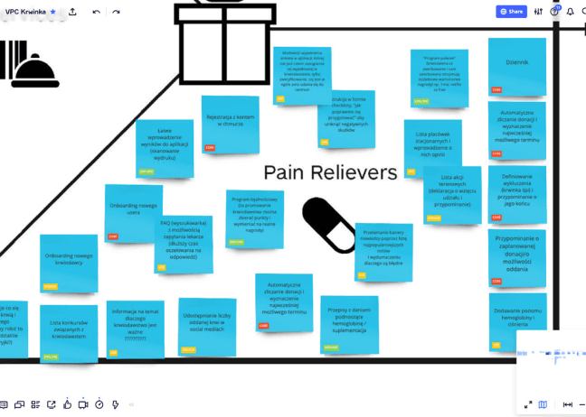 Gain Creators & Pain Relievers mapped out