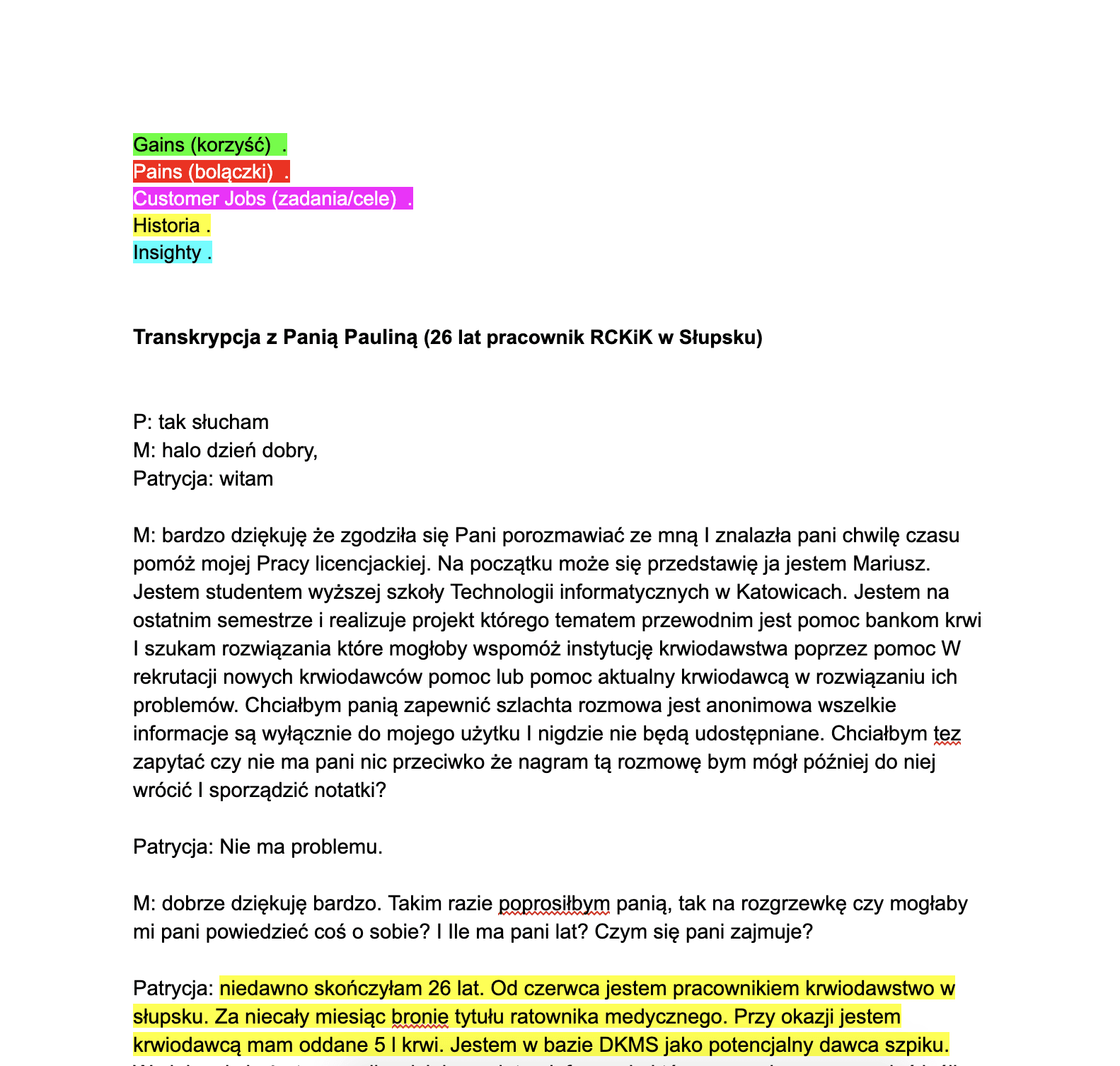 Excerpt from the transcript of the conversation, conducted with one of the participants of the individual interviews, carried out as part of the thesis work